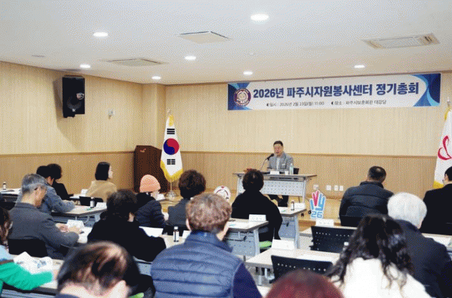 [NWS¹æ¼Û=Çѽ¸ñ ±âÀÚ]ÆÄÁֽô Áö³­ 23ÀÏ ÆÄÁֽú¸ÈÆÈ¸°ü¿¡¼­ '2026³â ÆÄÁÖ½ÃÀÚ¿øºÀ»ç¼¾ÅÍ Á¤±âÃÑȸ¡¯¸¦ °³ÃÖÇß´Ù°í ¹àÇû´Ù. À̹ø Á¤±âÃÑȸ¿¡¼­´Â ÆÄÁÖ½ÃÀÚ¿øºÀ»ç¼¾ÅÍÀÇ ÀÓ¿ø°ú Á¤È¸¿ø ´ÜüÀå µî 80¿© ¸íÀÌ Âü¼®ÇØ 2025³â »ç¾÷ ½ÇÀû ¹×¡¦