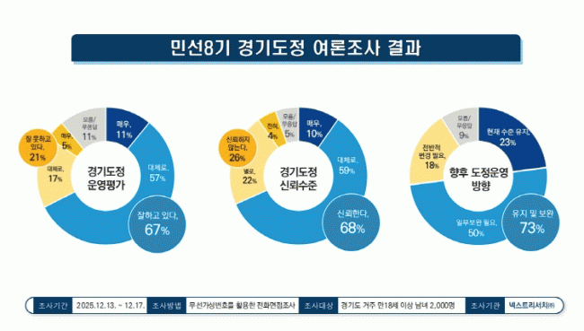 [»çȸ] 12¿ù ¹Î¼±8±â °æ±âµµÁ¤ ±àÁ¤Æò°¡ 67%. 9¿ù ´ëºñ 6%p »ó½Â |2025. 12.22