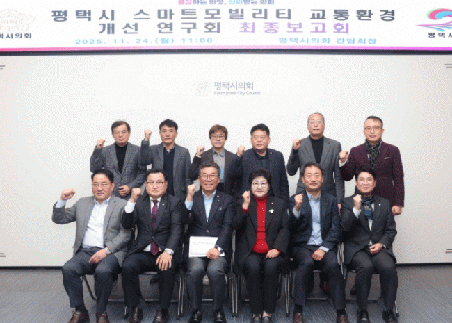 [NWS¹æ¼Û=Çѽ¸ñ ±âÀÚ]ÆòÅýÃÀÇȸ ÀÇ¿ø ¿¬±¸´ÜüÀÎ ¡®ÆòÅýà ½º¸¶Æ®¸ðºô¸®Æ¼ ±³Åëȯ°æ °³¼± ¿¬±¸È¸¡¯´Â 24ÀÏ ½ÃÀÇȸ °£´ãȸÀå¿¡¼­ ÃÖÁ¾º¸°íȸ¸¦ °³ÃÖÇß´Ù. º¸°íȸ¿¡´Â ÀÌÀ±ÇÏ ´ëÇ¥ÀÇ¿øÀ» ºñ·ÔÇØ ±è¿µÁÖ¡¤¼Ò³²¿µ¡¤ÃÖÀ翵¡¤ÃÖÁر¸ ÀÇ¿ø°ú¡¦