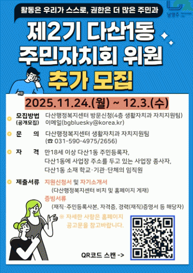 [»çȸ] ³²¾çÁÖ½Ã, ´Ù»ê1µ¿ Á¦2±â ÁÖ¹ÎÀÚġȸ À§¿ø Ãß°¡ ¸ðÁý |2025. 11.24