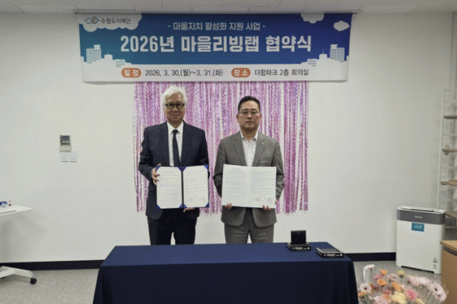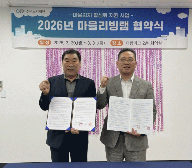 [NWS¹æ¼Û=Çѽ¸ñ ±âÀÚ]¼ö¿ø½Ã Àå¾È±¸ ÆÄÀ嵿 ÁÖ¹ÎÀÚġȸ´Â Áö³­ 30ÀÏ, ¡®2026³â ¸¶À»¸®ºù·¦ °ø¸ð»ç¾÷¡¯¿¡ ¼±Á¤µÊ¿¡ µû¶ó »ç¾÷ÀÇ ¿øÈ°ÇÑ ÃßÁøÀ» À§ÇØ ¼ö¿øµµ½ÃÀç´Ü°ú ¾÷¹«Çù¾àÀ» ü°áÇß´Ù. ¸¶À»¸®ºù·¦Àº ÁÖ¹ÎÀÌ Áö¿ª ³» »ýȰ¹®Á¦¸¦ Á÷Á¢ ¡¦