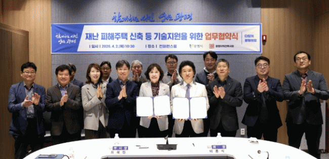 [NWS¹æ¼Û=Çѽ¸ñ ±âÀÚ]±¤¸í½Ã°¡ Àç³­À¸·Î »îÀÇ ÅÍÀüÀ» ÀÒÀº ½Ã¹ÎµéÀÇ ºü¸¥ ÀÏ»ó º¹±Í¸¦ µ½±â À§ÇØ Áö¿ª °ÇÃà Àü¹®°¡µé°ú ¼ÕÀ» Àâ¾Ò´Ù. ½Ã´Â 2ÀÏ ¿ÀÀü ½Ãû ÄÁÆÛ·±½º·ë¿¡¼­ ±¤¸íÁö¿ª°ÇÃà»çȸ¿Í ¡®Àç³­ ÇÇÇØÁÖÅà ½ÅÃà µî ±â¼úÁö¿øÀ» À§ÇÑ ¡¦