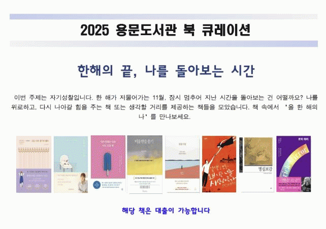 [»çȸ] ¾çÆò±º ¿ë¹®µµ¼­°ü, 'Ã¥ Ãßõ ¼­ºñ½º(ºÏ Å¥·¹À̼Ç)' ¿î¿µ |2025. 11.04