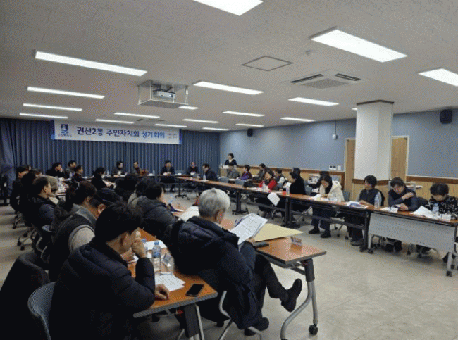 [NWS¹æ¼Û=Çѽ¸ñ ±âÀÚ]±Ç¼±±¸ ±Ç¼±2µ¿ ÁÖ¹ÎÀÚġȸ´Â Áö³­ 5ÀÏ ±Ç¼±2µ¿ ÇàÁ¤º¹Áö¼¾ÅÍ¿¡¼­ 2¿ù Á¤±âȸÀǸ¦ °³ÃÖÇß´Ù. ÀÌ ³¯ Á¤±âȸÀÇ¿¡¼­´Â ¡ã¸¶À»¸®ºù·¦ °ø¸ð»ç¾÷ Á¢¼ö ¾È³» ¡ã 'Á¦18ȸ ¿ÂÁ¤ ³ª´® ¹®È­Á¦' ÃßÁø ÀÏÁ¤ ¡ãÁÖ¹ÎÀÚġȸ 2025³â¡¦