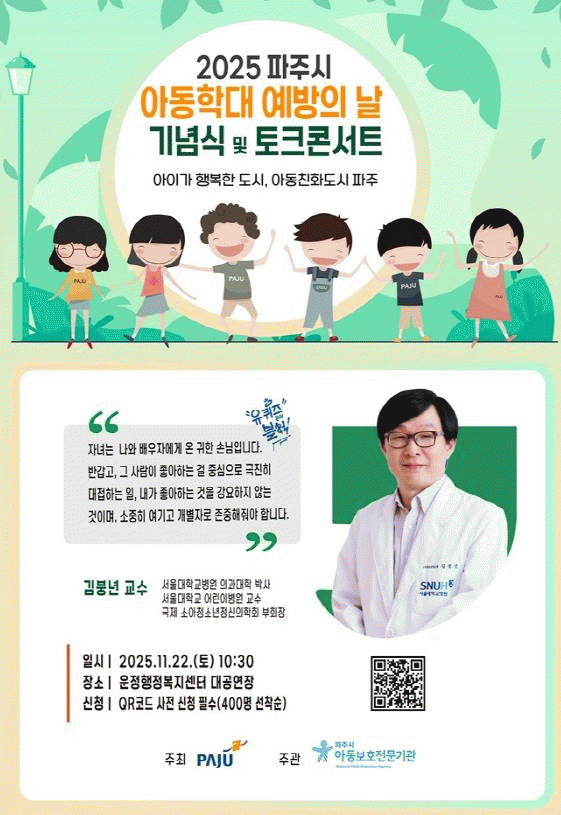[»çȸ] ÆÄÁÖ½Ã, '¾Æµ¿ÇÐ´ë ¿¹¹æÀÇ ³¯ ±â³ä ÅäÅ©Äܼ­Æ®' °³ÃÖ |2025. 11.17
