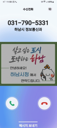 [NWS¹æ¼Û=Çѽ¸ñ ±âÀÚ]Çϳ²½Ã´Â °ø¹«¿ø ÇàÁ¤ÀüÈ­ ¹ß½Å ½Ã, ½Ã¹ÎÀÇ ½º¸¶Æ®Æù È­¸é¿¡ ¡®Çϳ²½Ãû °ú¡¯ µî ÀüÈ­¹øÈ£¿Í ºÎ¼­¸íÀÌ ÇÔ²² Ç¥½ÃµÇ´Â ¡®ÇàÁ¤ÀüÈ­ ¹ß½ÅÁ¤º¸ ¾Ë¸®¹Ì ¼­ºñ½º¡¯¸¦ µµÀÔÇß´Ù°í 7ÀÏ ¹àÇû´Ù. ÃÖ±Ù ¹°Ç° °è¾àÀ̳ª °ø»ç ´ë±Ý¡¦