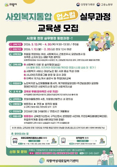 [»çȸ] Àǿտ©¼º»õÀϼ¾ÅÍ, '»çȸº¹Áö ÅëÇÕ ¾÷½ºÅ³ ½Ç¹«°úÁ¤' ±³À°»ý ¸ðÁý |2026. 01.12