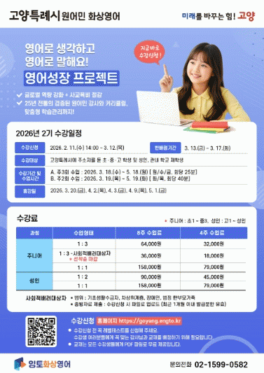 [»çȸ] °í¾ç½Ã, 2026³â 2±â ¿ø¾î¹Î È­»ó¿µ¾î ¼ö°­»ý ¸ðÁý |2026. 02.11