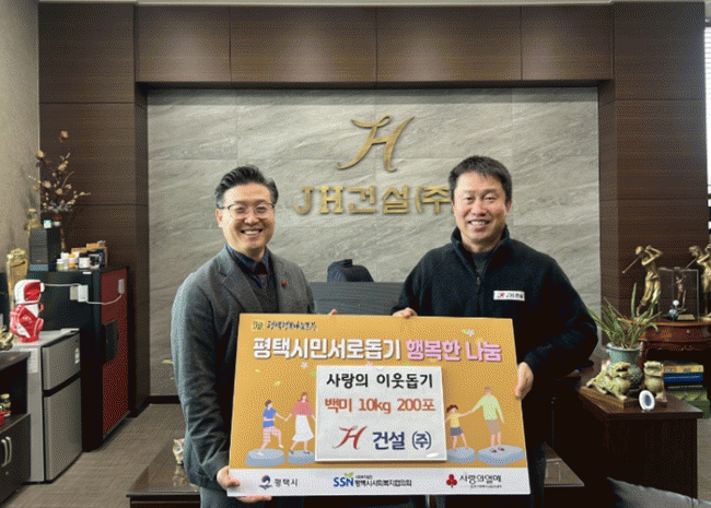 [NWS¹æ¼Û=Çѽ¸ñ ±âÀÚ]JH°Ç¼³¢ß´Â Áö³­ 10ÀÏ ÆòÅÃÇູ³ª´®º»ºÎ¿¡ ¹é¹Ì10kg 200Æ÷(922¸¸¿ø »ó´ç)¸¦ Àü´ÞÇß´Ù. À̳¯ Àü´Þ½Ä¿¡ Âü¼®ÇÑ JH°Ç¼³¢ß ÀÓÁØÈñ ´ëÇ¥ÀÌ»ç´Â ¡°¼³À» ¸Â¾Æ ¼Ò¿Ü°èÃþ¿¡°Ô µµ¿òÀÌ µÇ°íÀÚ ½ÒÀ» ±âºÎÇÏ°Ô µÆ´Ù¡±°í ¹àÇûÀ¸¡¦