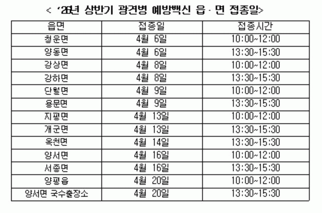 [NWS¹æ¼Û=Çѽ¸ñ ±âÀÚ]¾çÆò±ºÀº ¿À´Â 4¿ù 6ÀϺÎÅÍ 4¿ù 24ÀϱîÁö ±¤°ßº´ ¿¹¹æÁ¢Á¾À» ½Ç½ÃÇÑ´Ù°í ¹àÇû´Ù. ¾çÆò±ºÀº Àμö°øÅëÀü¿°º´ÀÎ ±¤°ßº´À» ¿¹¹æÇϱâ À§ÇØ ¿¬ 2ȸ ¿¹¹æÁ¢Á¾ »ç¾÷À» ½Ç½ÃÇϰí ÀÖ´Ù. 2026³â »ó¹Ý±â Á¢Á¾ ´ë»óÀº µ¿¹°µî·ÏÀÌ¡¦