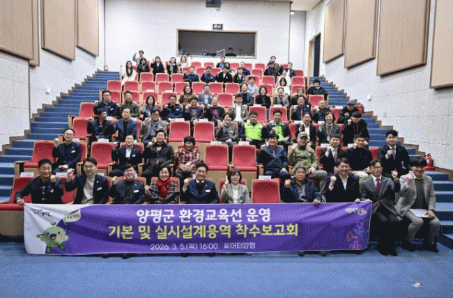 [NWS¹æ¼Û=Çѽ¸ñ ±âÀÚ]¾çÆò±ºÀº Áö³­ 5ÀÏ »ýȰ¹®È­¼¾ÅÍ ¾¾¾îÅ;çÆò¿¡¼­ ¡®¾çÆò±º ȯ°æ±³À°¼± ¿î¿µ ±âº» ¹× ½Ç½Ã¼³°è ¿ë¿ª Âø¼öº¸°íȸ¡¯¸¦ °³ÃÖÇϰí ȯ°æ±³À°¼± µµÀÔÀ» À§ÇÑ º»°ÝÀûÀÎ ¼³°è ÀýÂ÷¿¡ Âø¼öÇß´Ù. À̳¯ º¸°íȸ¿¡´Â ÀüÁø¼± ¾çÆò¡¦