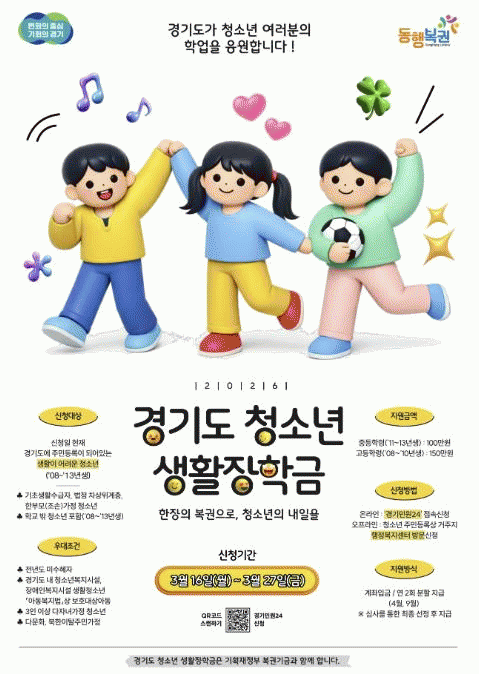 [NWS¹æ¼Û=Çѽ¸ñ ±âÀÚ]±¸¸®½Ã´Â ¿À´Â 3¿ù 16ÀϺÎÅÍ 3¿ù 27ÀϱîÁö°æÁ¦ÀûÀ¸·Î ¾î·Á¿î û¼Ò³âµéÀÇ Çо÷ Áö¼Ó°ú »ýȰ ¾ÈÁ¤À» Áö¿øÇϱâ À§ÇØ ¿À´Â 3¿ù 16ÀϺÎÅÍ 3¿ù 27ÀϱîÁö ¡®2026³â °æ±âµµ û¼Ò³â »ýȰÀåÇÐ±Ý Áö¿ø»ç¾÷¡¯ ½ÅûÀ» Á¢¼ö¹Þ´Â´Ù¡¦