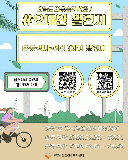 [»çȸ] °í¾ç½ÃÁ¤½Å°Ç°­º¹Áö¼¾ÅÍ, û³â ¸¶À½½À°ü Çü¼º ÇÁ·ÎÁ§Æ® '#¿À¸¶¿Ï 縰Áö' Âü¿©ÀÚ ¸ðÁý |2026. 03.27