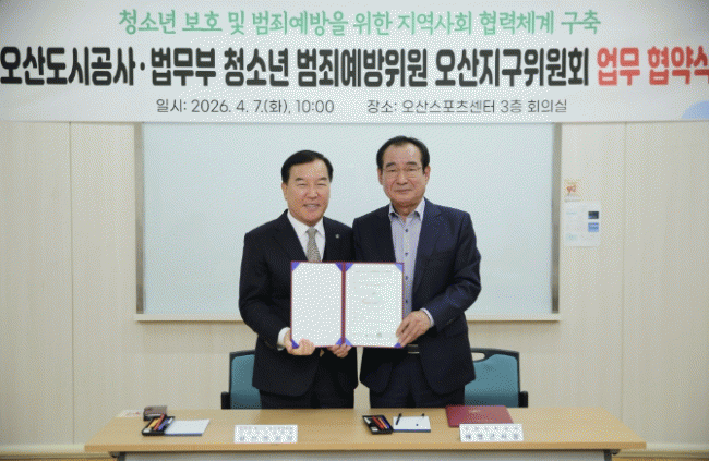 [»çȸ] ¿À»êµµ½Ã°ø»ç, û¼Ò³â º¸È£ °­È­¸¦ À§ÇÑ ¾÷¹«Çù¾à ü°á |2026. 04.10