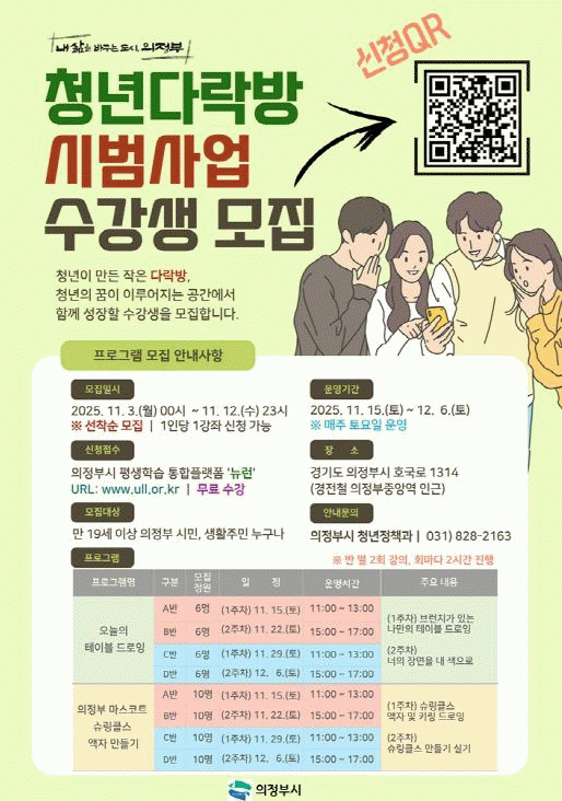 [»çȸ] ÀÇÁ¤ºÎ½Ã, û³âÀÌ Á÷Á¢ ±âȹÇÑ 'û³â´Ù¶ô¹æ ½Ã¹ü»ç¾÷' ¿î¿µ |2025. 11.12