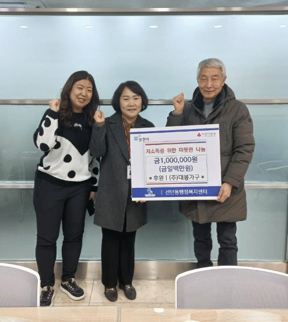 [NWS¹æ¼Û=Çѽ¸ñ ±âÀÚ]Æ÷õ½Ã ¼±´Üµ¿ ÇàÁ¤º¹Áö¼¾ÅÍ´Â °ü³» ±â¾÷ÀÎ ´ëºÀ°¡±¸°¡ Áö¿ª ³» ¾î·Á¿î ÀÌ¿ôÀ» µ½±â À§ÇØ »óǰ±Ç 100¸¸ ¿øÀ» ±âŹÇß´Ù°í ¹àÇû´Ù. À̹ø ±âŹÀº ³­¹æºñ »ó½ÂÀ¸·Î °Ü¿ïö ¿¡³ÊÁö Ãë¾à°èÃþÀÇ ¾î·Á¿òÀÌ Ä¿Áü¿¡ µû¶ó, ½Ç¡¦